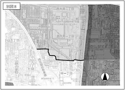 (16) 藤井寺市の区域(高速自動車国道近畿自動車道天理吹田線(西名阪道路)(別図8の線で示す道路及び水路との藤井寺市小山八丁目における交点から松原市界までに限る。)及び別図8の線で示す道路及び水路(高速自動車国道近畿自動車道天理吹田線(西名阪道路)との藤井寺市小山八丁目における交点から一般国道170号(大阪外環状線の部分に限る。)との藤井寺市大井一丁目における交点までに限る。)以北の区域並びに一般国道170号(大阪外環状線の部分に限る。)以東の区域に限る。)