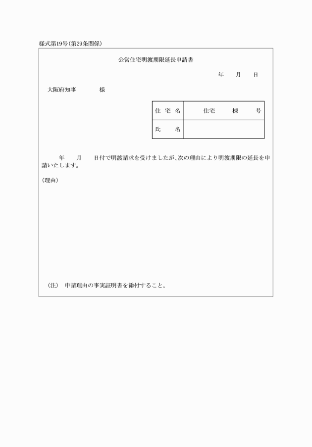 第十九条 入居者は、法第二十七条第五項の規定により、公営住宅の入居の際に同居した親族以外の者を同居させようとするときは、同居承認申請書(様式第十一号)を知事に提出しなければならない。