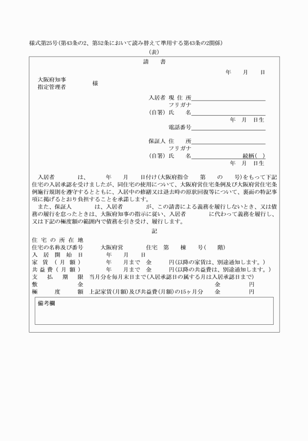 第九条 条例第七条第二項第一号に規定する請書は、請書(様式第三号)とし、これを知事に提出しなければならない。