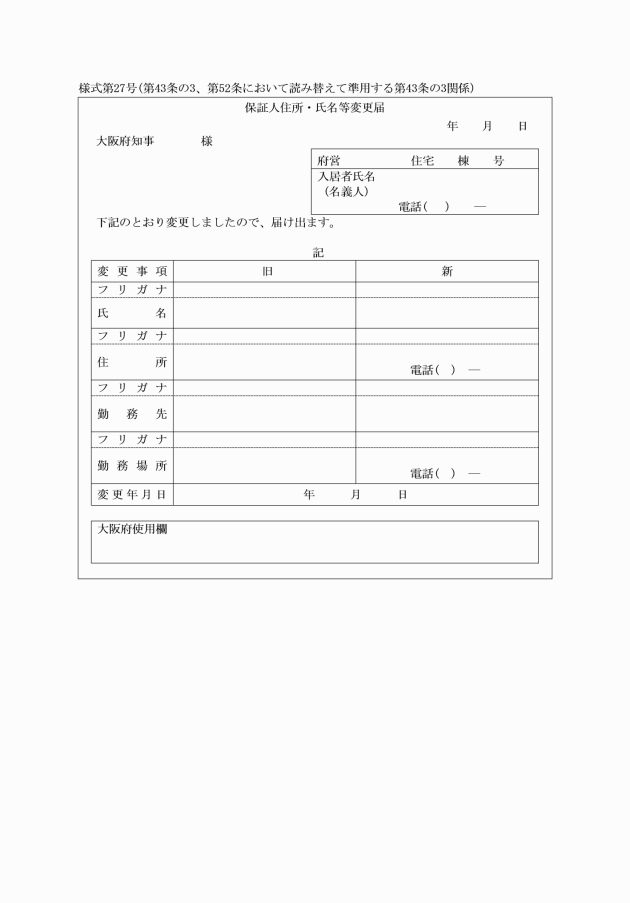 大阪府営住宅管理条例施行規則(昭和二十七年大阪府規則第三号)の全部を改正する。