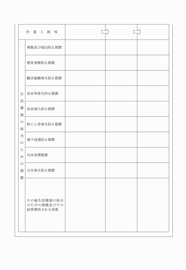 ヘ 廃棄物処理法施行令第六条第一項第一号ハからヘまでに規定する積替え及び保管に係る基準に適合するために実施する生活環境の保全のための措置に係る計画