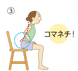 ② 骨盤を立てて背すじを伸ばす。頭のてっぺんを天井に向ける。