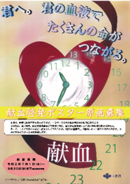 10代・20代の献血者は減少傾向にあり、近い将来、適切な医療を受けられない事態を招きかねません。一人でも多くの若者に献血してもらうため、「献血の重要性」、「輸血によって救われる命の大切さ」を啓発するポスター原画を募集します。