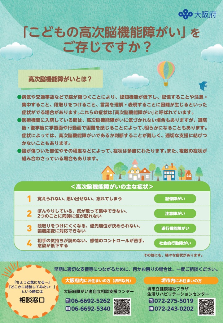 子どもの高次脳機能障がいの特徴や支援方法を記載したリーフレットが大阪市立総合医療センターによって作成されました。
