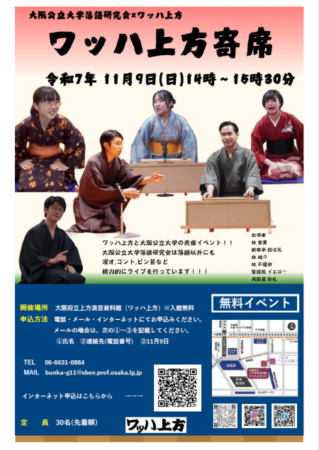 【参加受付中】「大阪公立大学落語研究会×ワッハ上方 ワッハ上方寄席」開催のお知らせ(令和7年11月9日(日曜日))