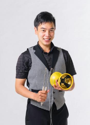 キャッチコピーは“大道芸界の若獅子”小柄ながらもパワフルで折り紙つきの技術力であらゆるものをジャグリングします!