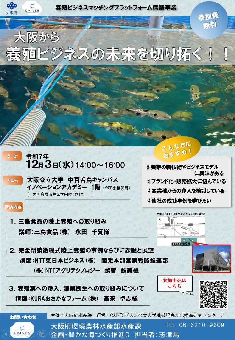 トップページ > 催し・講座・資格・採用試験 > 大阪から養殖ビジネスの未来を切り拓く!!