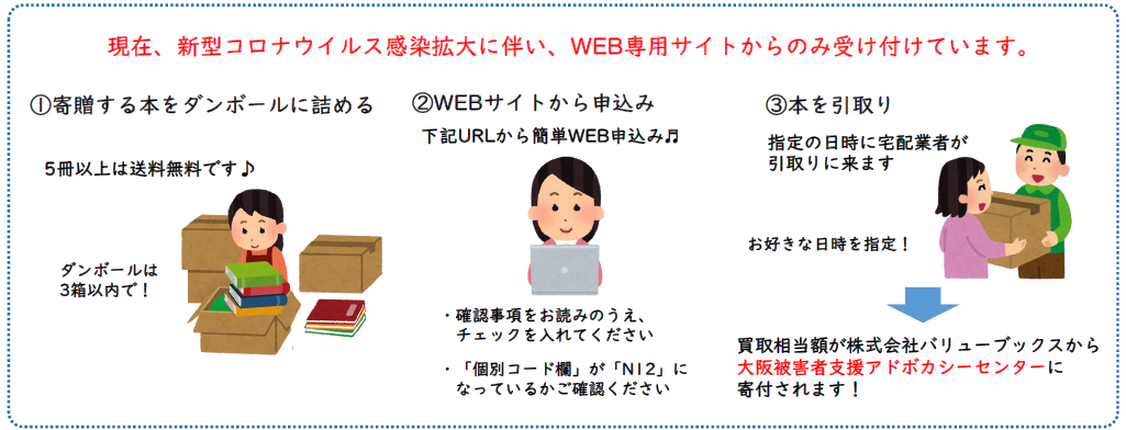 Web申込みは「本で寄付するしくみ~チャリボン」(外部サイトへリンク)(別ウィンドウで開きます)から