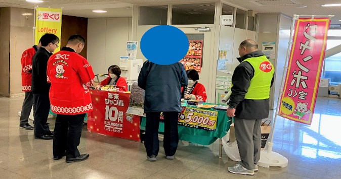 約2時間の実施で、中国・フィリピン・フランス・ベトナムの方々(計5名)が宝くじを購入されました。