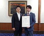 「被災者支援」に多額の寄付をいただきました、合同会社TSM107に対して、感謝状贈呈式を行い、式には知事と合同会社TSM107より寄付の代表者として乙社ベストウェスタンホテルフィーノ大阪心斎橋総支配人が出席しました。知事は「いただいたご寄付は、被災者支援のために効果的に、かつ大切に活用させていただく」と述べ、感謝の意を伝えました。
