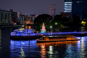 今年も「ドリカムツリー」を巡るナイトクルーズが運航されました。船内のBGMはDREAMS COME TRUEの楽曲も含めたクリスマスソングでした。