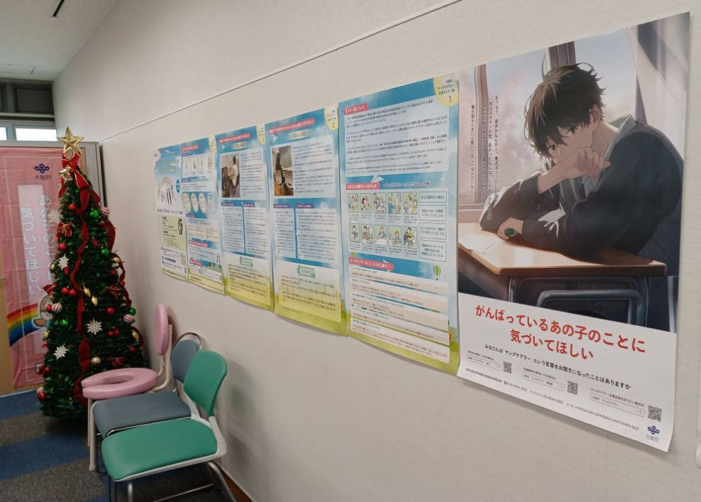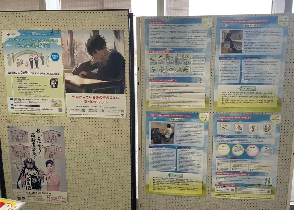 併せて、ヤングケアラーへの応援のメッセージを2枚作成いただきましたので、ポスター展のポスターと一緒に掲示しています(大阪府新別館地下鉄連絡通路。令和6年11月20日から令和7年1月24日まで)。