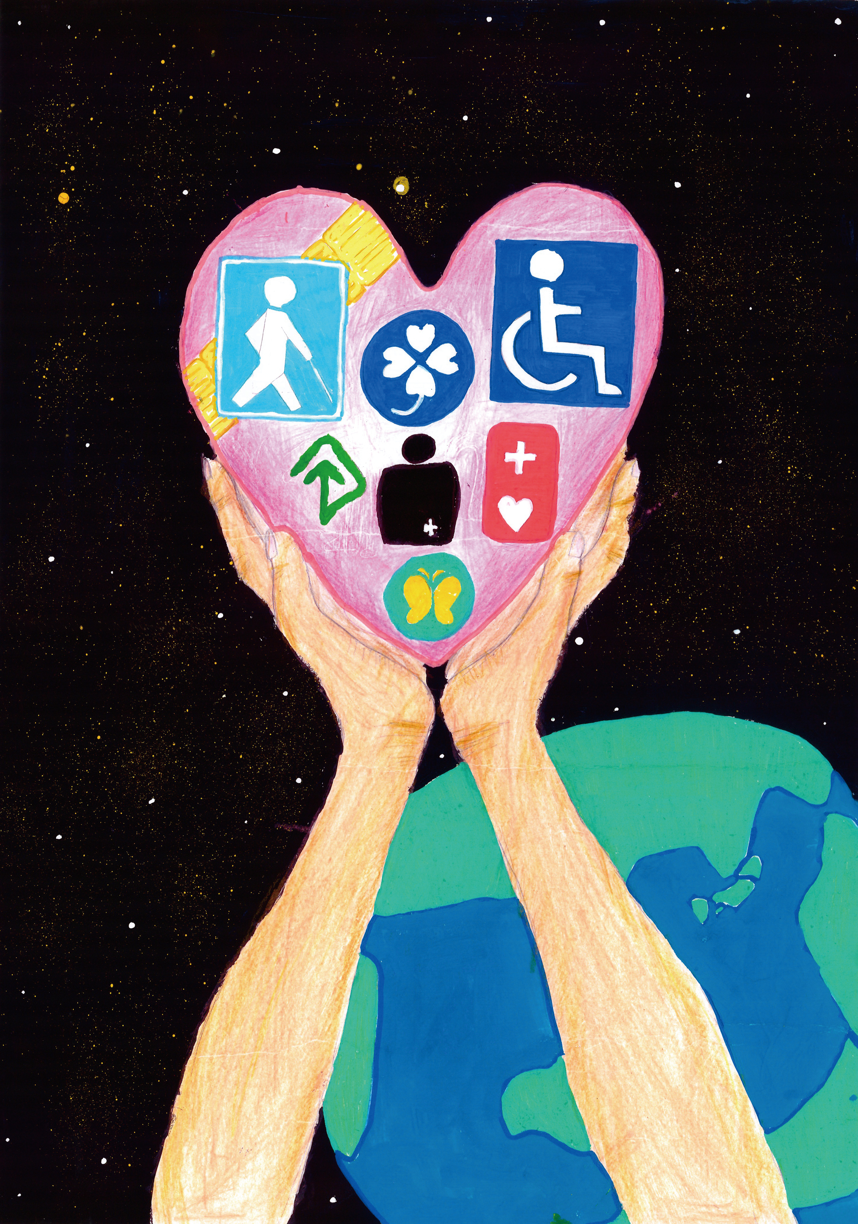 この作品集を通じて、障がいへの理解を一層深めていただき、理解不足から生じる差別や偏見をなくすことで、すべての人にとって暮らしやすいまちを実現することを共にめざしましょう。