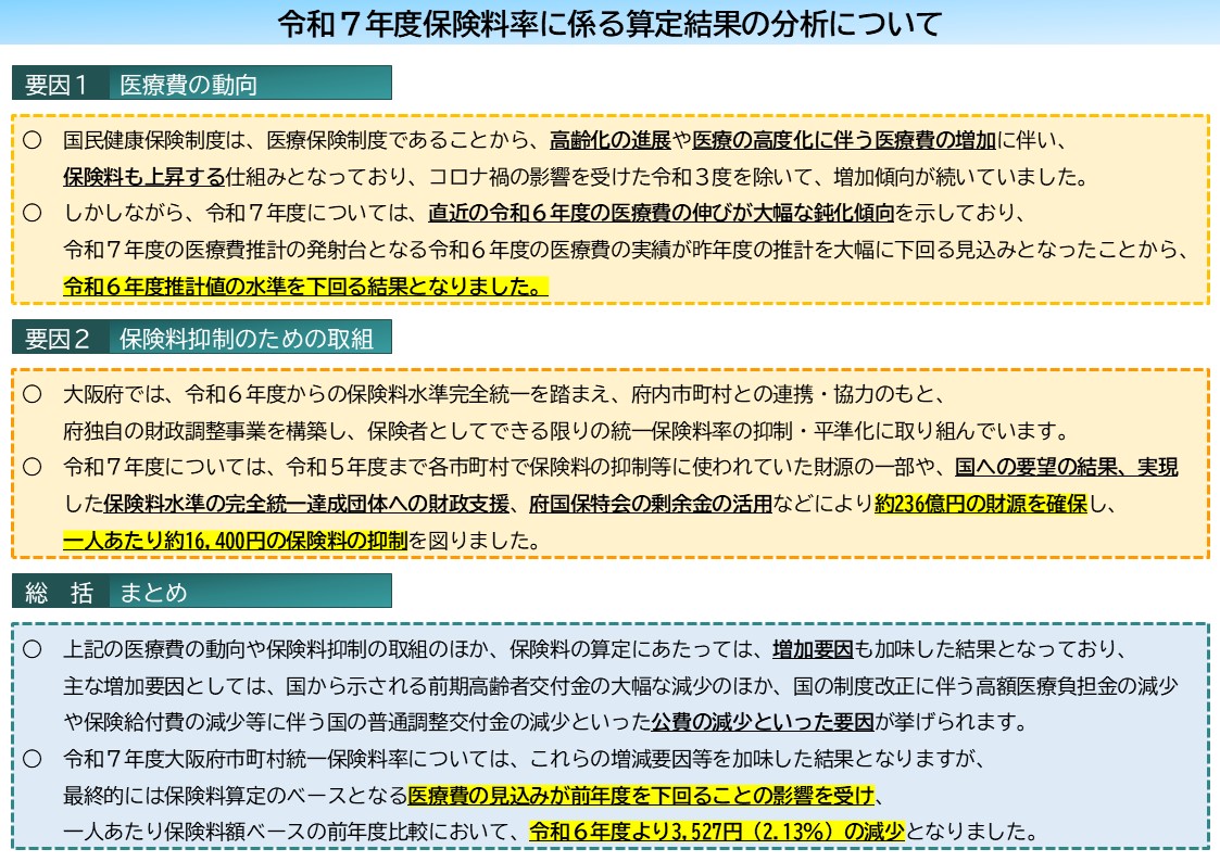 令和7年度大阪府市町村標準保険料率(大阪府統一保険料率)