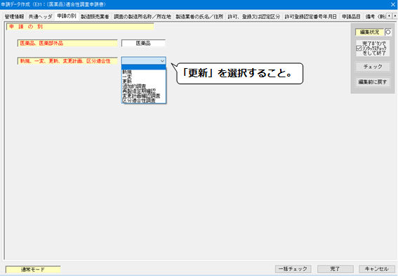 医薬品等適合性調査申請(E31,G21)〔承認定期・輸出定期〕の作成方法