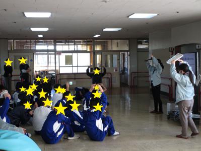つづいて、手洗い歌に合わせて楽しみながら手洗いの基本となる6つのポーズを覚えてもらいました。