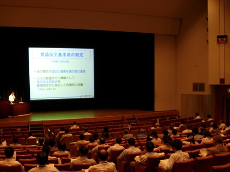 第1部の基調講演では、内閣府食品安全委員会事務局から「牛肉に関する食品健康影響評価」について、厚生労働省医薬食品局食品安全部からは「牛肉の安全性対策」について、大阪府松原食肉衛生検査所からは「と畜場での衛生管理」について説明しました。