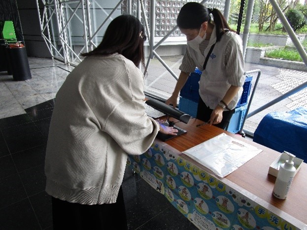 来場者の方に「手洗い実験」を通して、普段の手洗いがきちんと出来ているかを確認していただきました。
