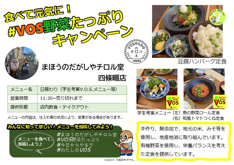 詳細は、大阪府ホームページ「みんなでV.O.S.(野菜たっぷり・適油・適塩)を始めよう!」をご覧ください。