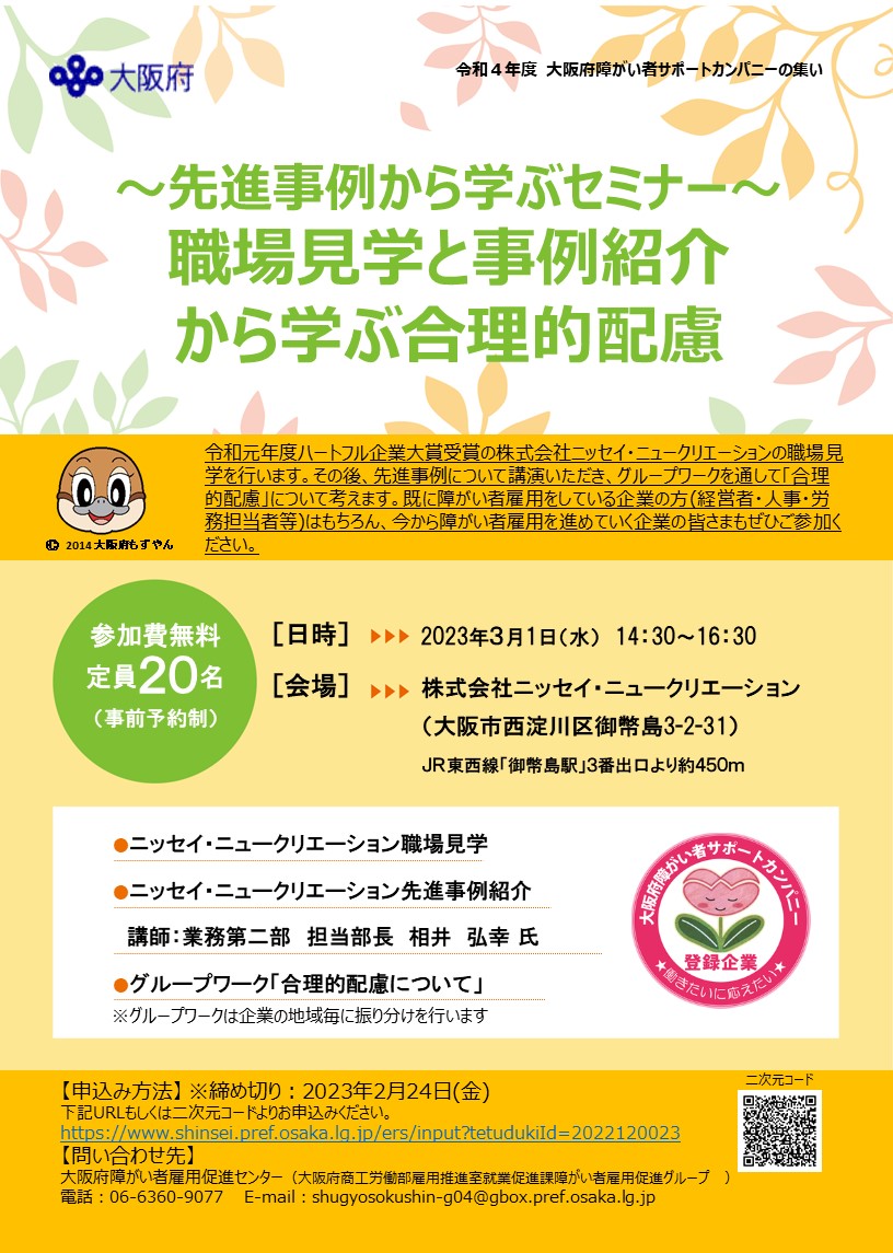 先進事例から学ぶセミナー「職場見学と事例紹介から学ぶ合理的配慮」(令和4年度大阪府障がい者サポートカンパニーの集い)