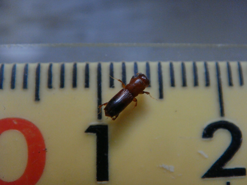 - 6月から8月頃に体長5ミリほどのカシノナガキクイムシが、健全なナラ・カシ類の幹に穴を開けて内部に入ります。