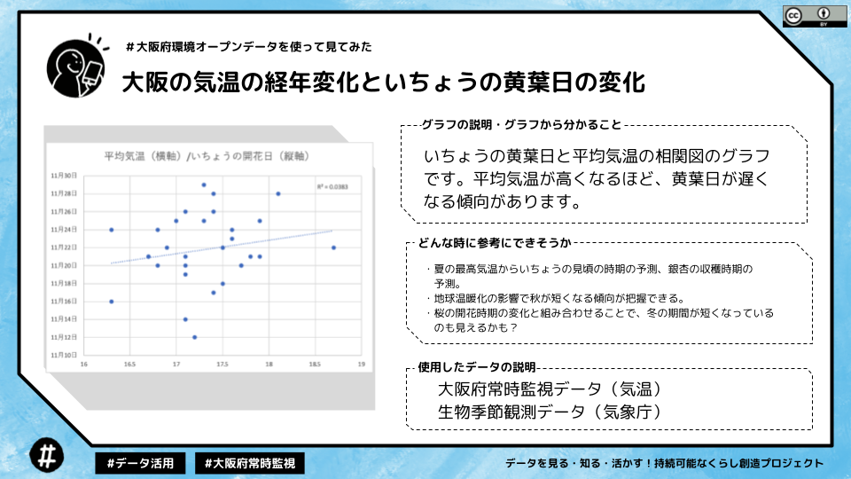 第2回では気象庁が公開している「生物季節観測」及び大阪府の「大阪府の大気情報ページ」に公表されている観測データを活用!