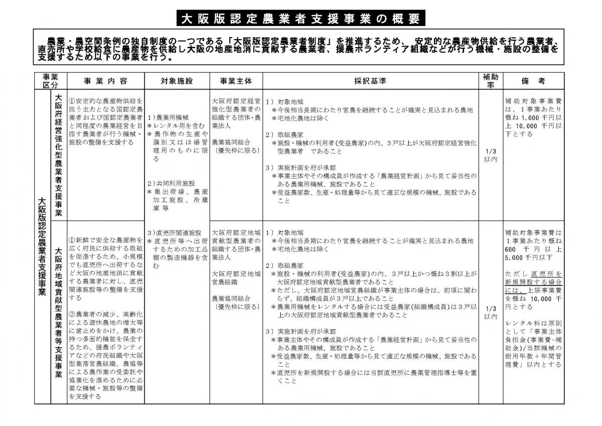 大阪版認定農業者支援事業について