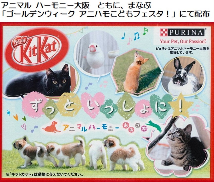 - アニマル ハーモニー大阪でのイベントにてオリジナルデザインパッケージのキットカットの提供