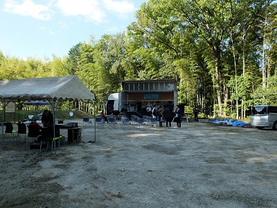 | 環境フェスタ氷室ふれあい里の駅の開催状況。(農産物の販売ブース) | 環境フェスタ氷室ふれあい里の駅の開催状況。(NPOの展示ブース) |