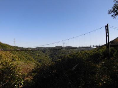 昼食休憩後は、ほしだ園地管理道を下ります。見上げると「星のブランコ」が見えました。