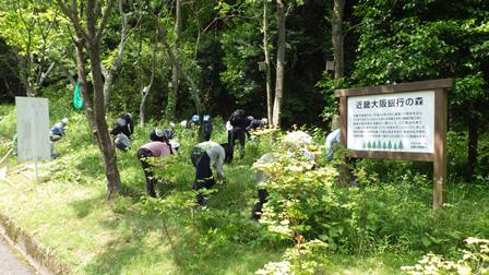 平成29年6月10日(土曜日)、交野市倉治(いきものふれあいの里)において近畿大阪銀行の新入社員をはじめ、社員、ご家族の方々総勢約80名の参加によりアドプトフォレスト活動として、交野山山頂近くの「近畿大阪銀行の森」で下草刈、植樹などの森づくり活動を行いました。(生駒山系花屏風活動)