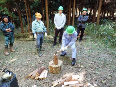 今回は、間伐と間伐材や台風で倒れた風倒木を活用した