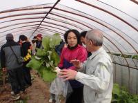 「近鉄八尾」駅からマイクロバスでほ場に移動、生産農家やJA大阪中河内職員から収穫方法などの説明を受けた後、1人5束ずつを収穫、JA大阪中河内の調理室に移動した。