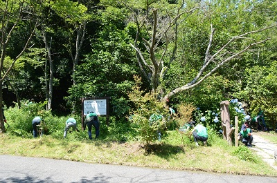 令和5年6月17日(土曜日)、交野市倉治(いきものふれあいの里)内の「関西みらい銀行の森」で、りそな銀行グループの従業員やそのご家族約80名が参加してアドプトフォレスト活動(生駒山系花屏風活動)を行いました。