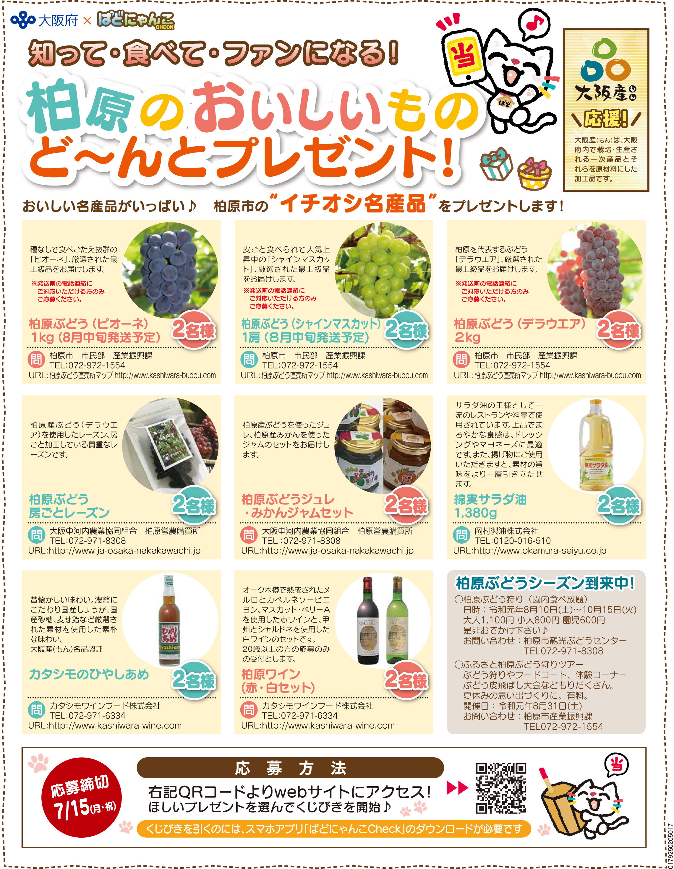 大阪府と関西ぱどグループの包括連携協定特別企画として、ぱどグループが運営・発行するメディアを活用し、柏原エリアの名産品をPRするプレゼント企画を実施します。