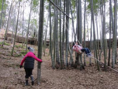 地元のNPO法人神於山保全くらぶの説明を聞いた後、竹を伐採(平成28年11月)