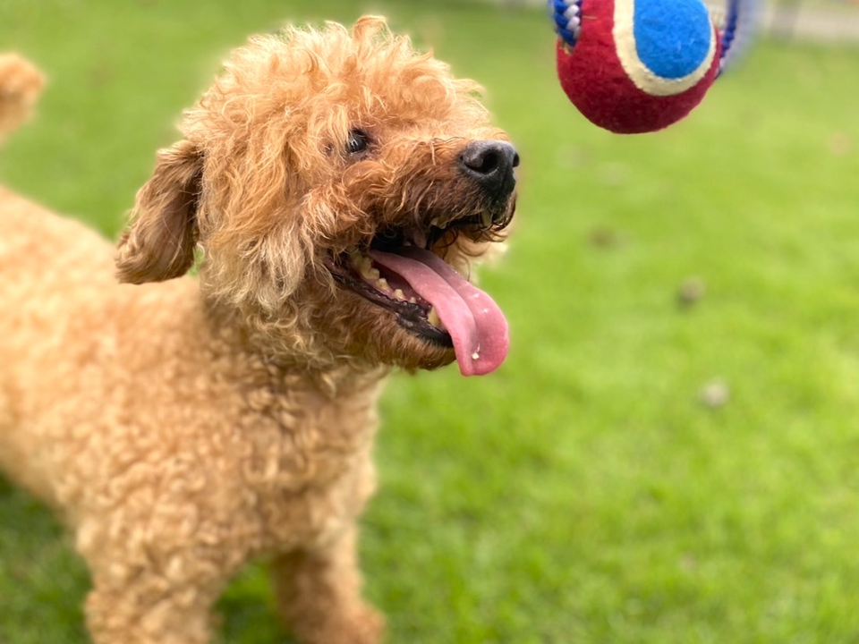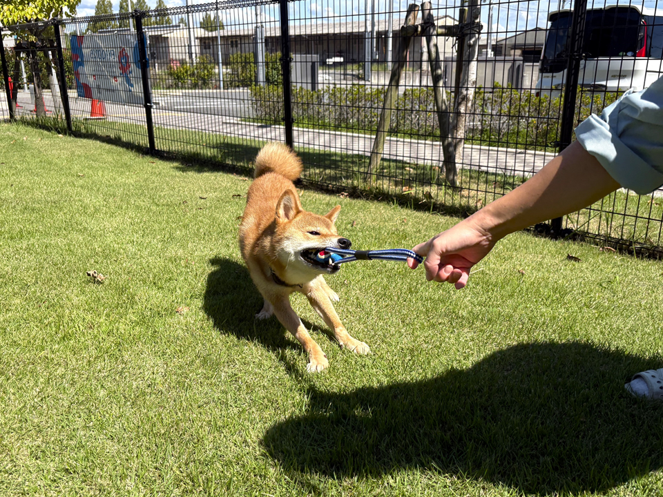 おもちゃで遊ぶのが大好きで、ハイテンションな男の子。ボールを追いかけて走り回ったり、ロープを引っ張り合ったりと全力で遊んでいます!わんぱくな性格ですが、「お座り」や「伏せ」、「待て」は習得済み、実は賢いんです!! お利口で活発的なこの子と、仲良くたくさん遊んでくださる飼い主さんを募集中です。 |