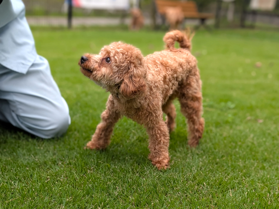 とにかく走り回るのが大好きな男の子。芝生でお友達と遊び疲れるまで走り回っています!勢いよく走りすぎて、お友達や人にぶつかってしまうこともしばしば…。走り疲れたら、抱っこで小休憩と自由奔放な子です! この子と仲良く走り回って、この子の成長を見守っていただける飼い主さんを募集中です。 |