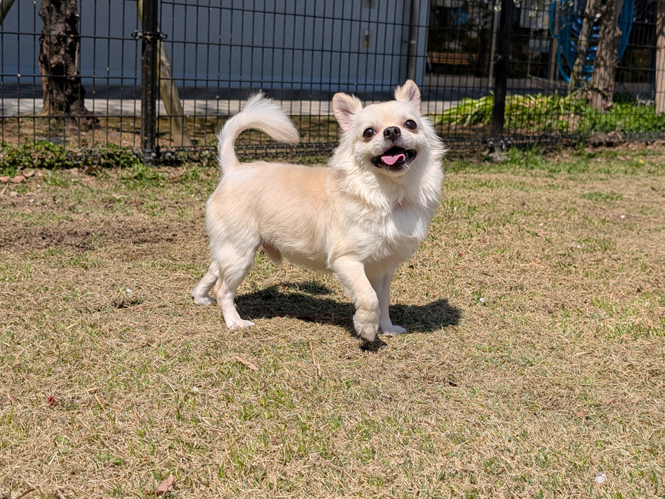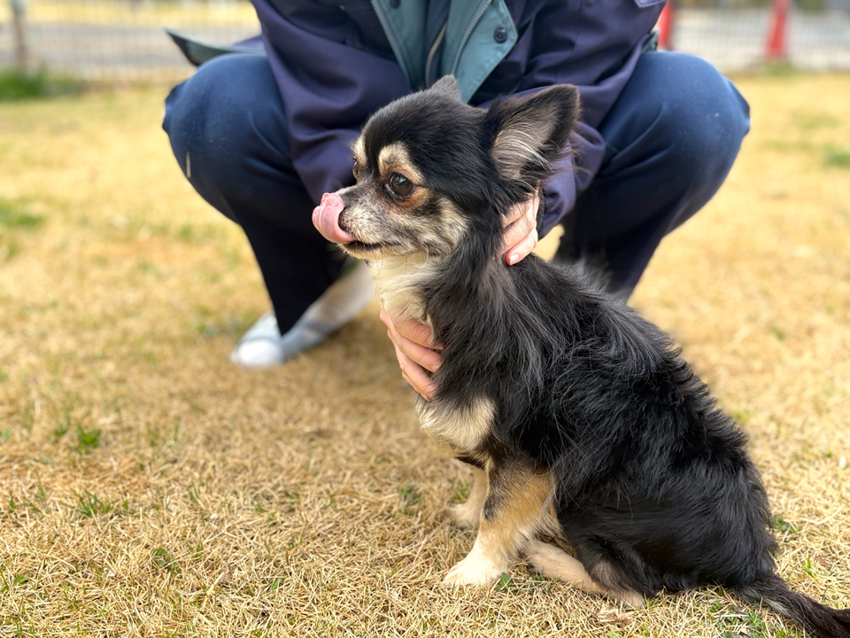 スカーフを巻いたような白毛がチャームポイントのおじいちゃん犬です。愛想がとてもよく、初対面でも人を見つけると元気よく走って追いかけてきてくれます!またテンションがあると飛び跳ねながら喜んだりと、年齢を感じさせないぐらい非常に元気です!少し寂しがり屋な所があるので、離れようとすると「もっと一緒にいて~」と甘えてきます。この子がたくさん甘えれる環境で、一緒に遊んでくださる飼い主さんを募集中です! |
