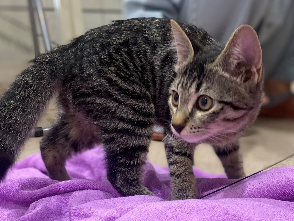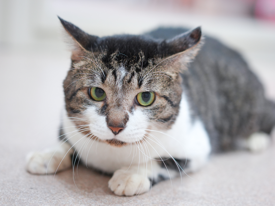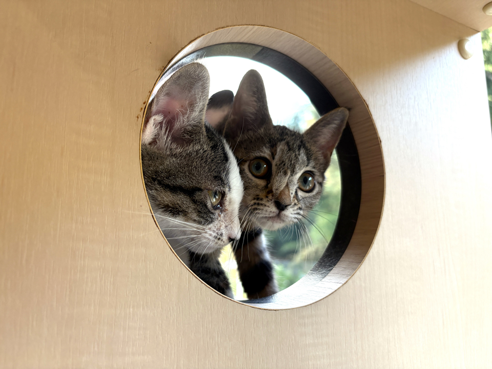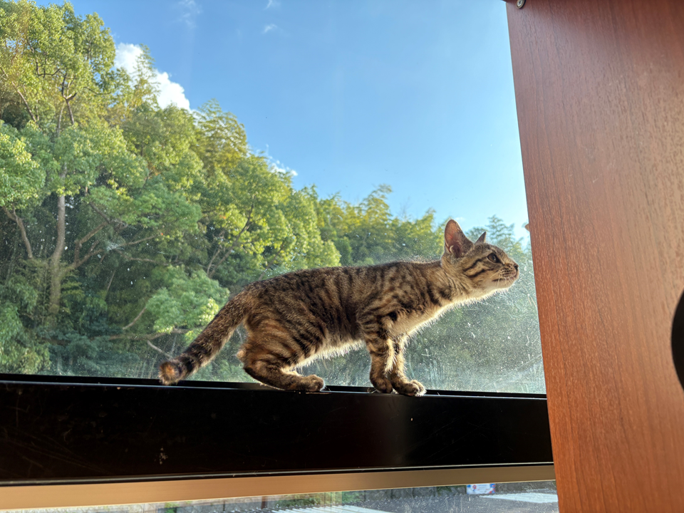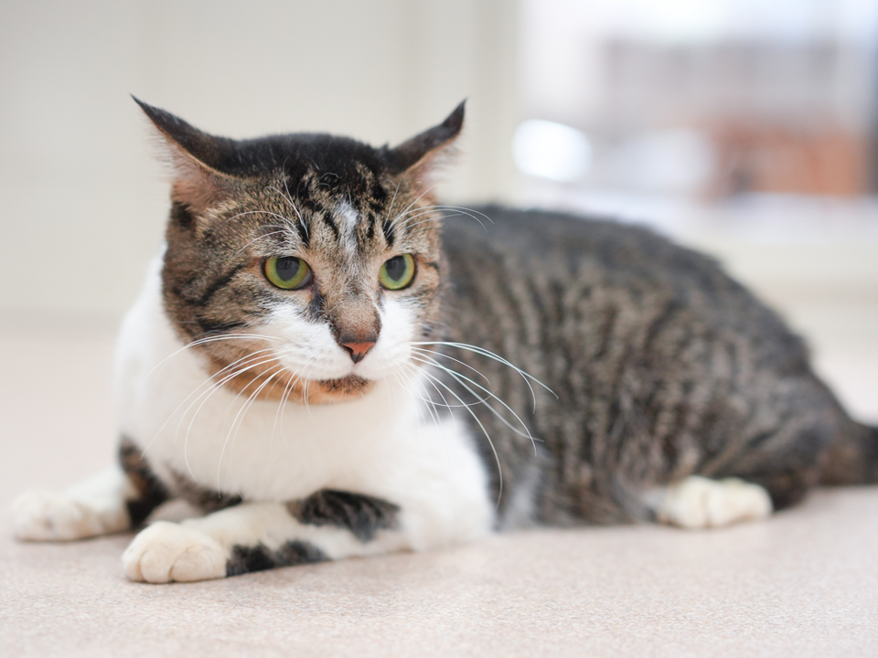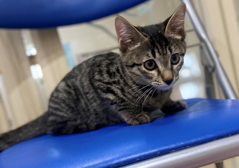 くっきりとした縞模様が特徴的な女の子、グリーンの瞳がとってもきれいです!自分のお部屋から人をみつけると「なでて~」と甘えた声ですりすりしてくれます。新しい場所では少し警戒して、まずはパトロール。でもおやつは大好きなので、新しい場所でもパクパク。新しい環境では、彼女が安心できるスペースでおやつをあげながら仲良くなってください! |