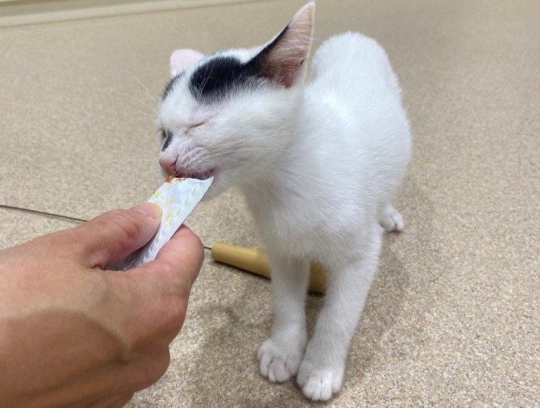 10月1日よりコーナン堺高須店で会えます! 白+黒系の毛色ときれいなブルーの瞳がとってもかわいい女の子です!ちょっぴりシャイガールですが、毎日少しずつふれあっていくうちに人馴れしてきました!最近では、美味しそうにおやつも人前で食べれるようになりました。またかまって欲しい時には自分から鳴いて呼ぶことも!! この子のスピードで少しずつ、仲良くなってくださる飼い主さんを募集中です! |