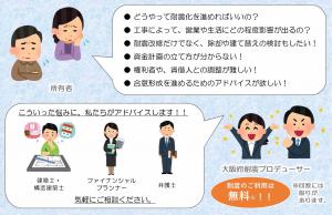 お問合せ先や詳細等については、こちらの大阪府耐震プロデューサー派遣制度のご案内(PDF:1,416KB)ををご覧ください。