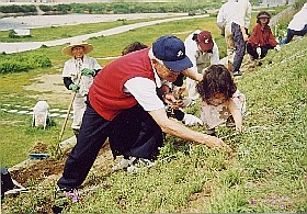 平成14年結成。季節ごとの花の栽培を行うほか、堤防の雑草を堆肥として活用したり、太陽光発電などを行うことにより自然環境保全の重要性を市民にアピールしています。
