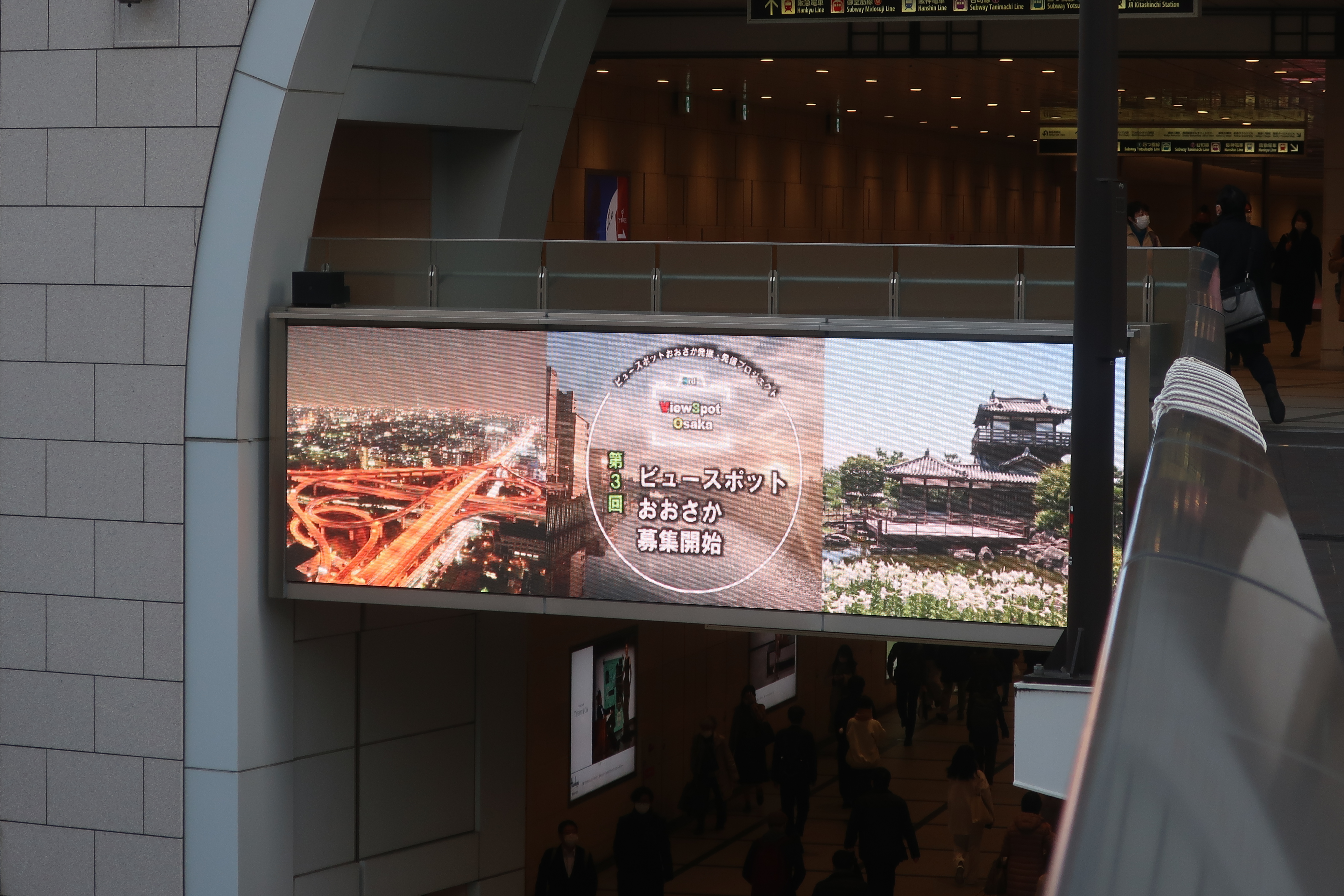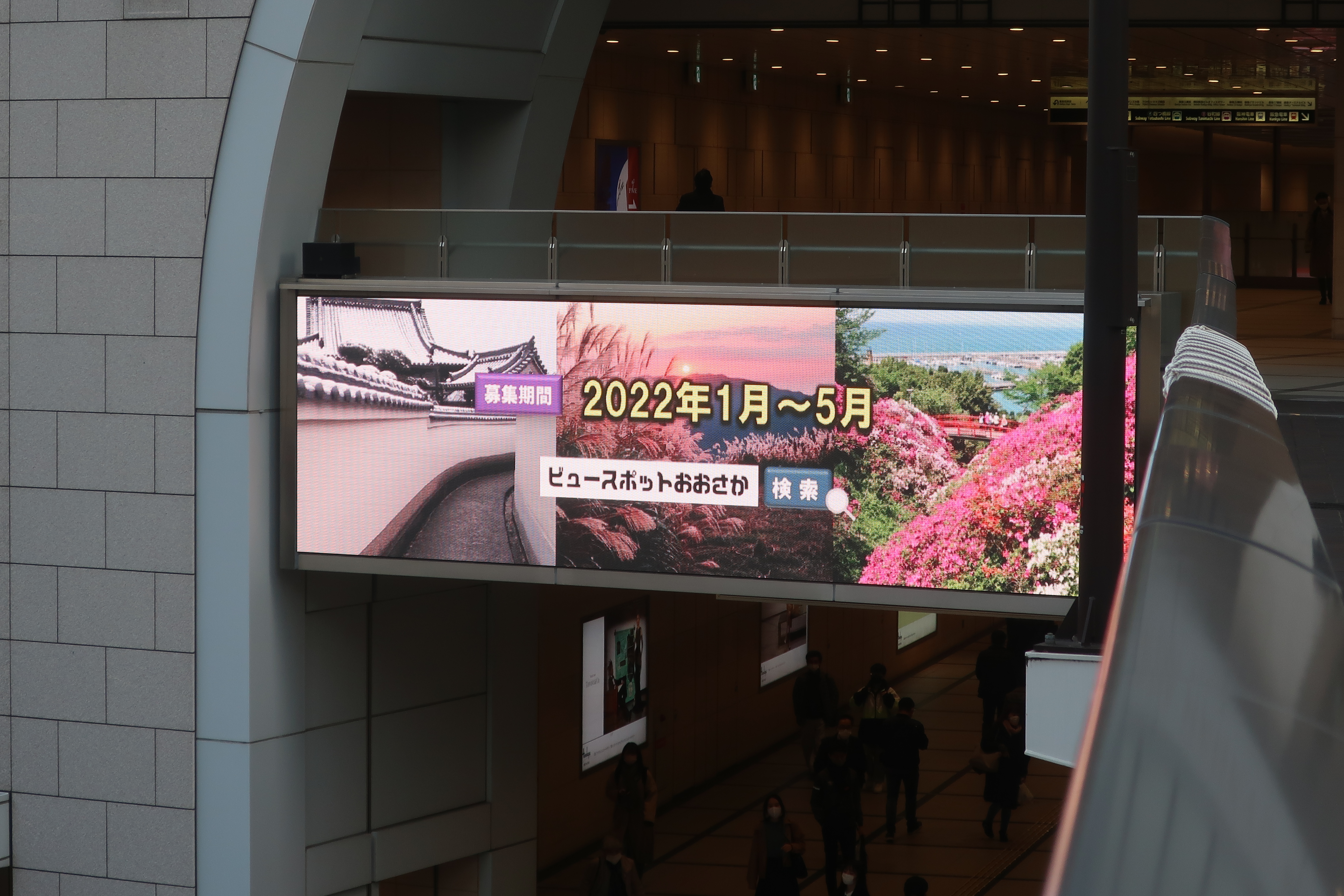 大阪府では、関係団体にご協力いただき、府内各所のデジタルサイネージにて、ビュースポットおおさかのPR動画を放映しております。