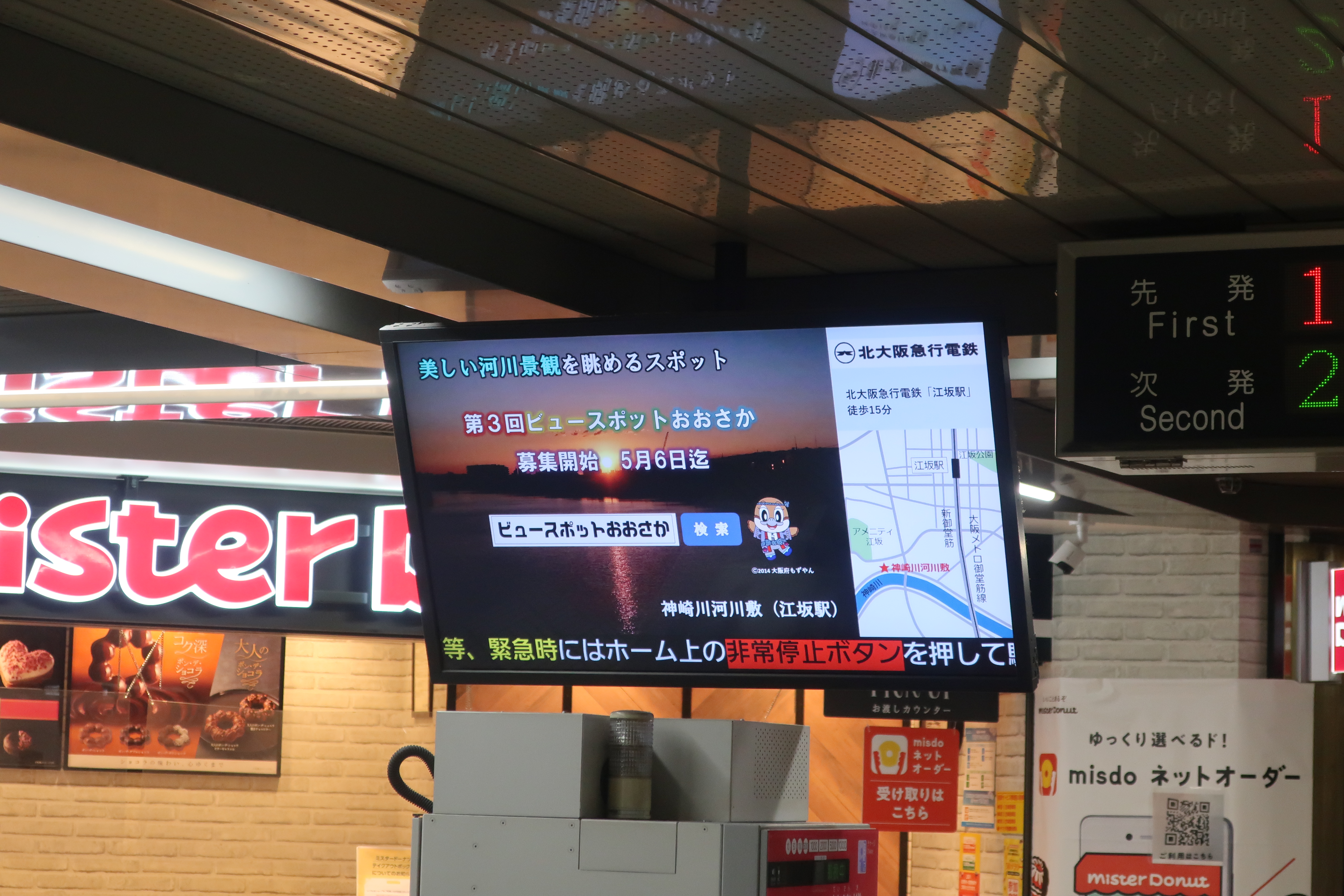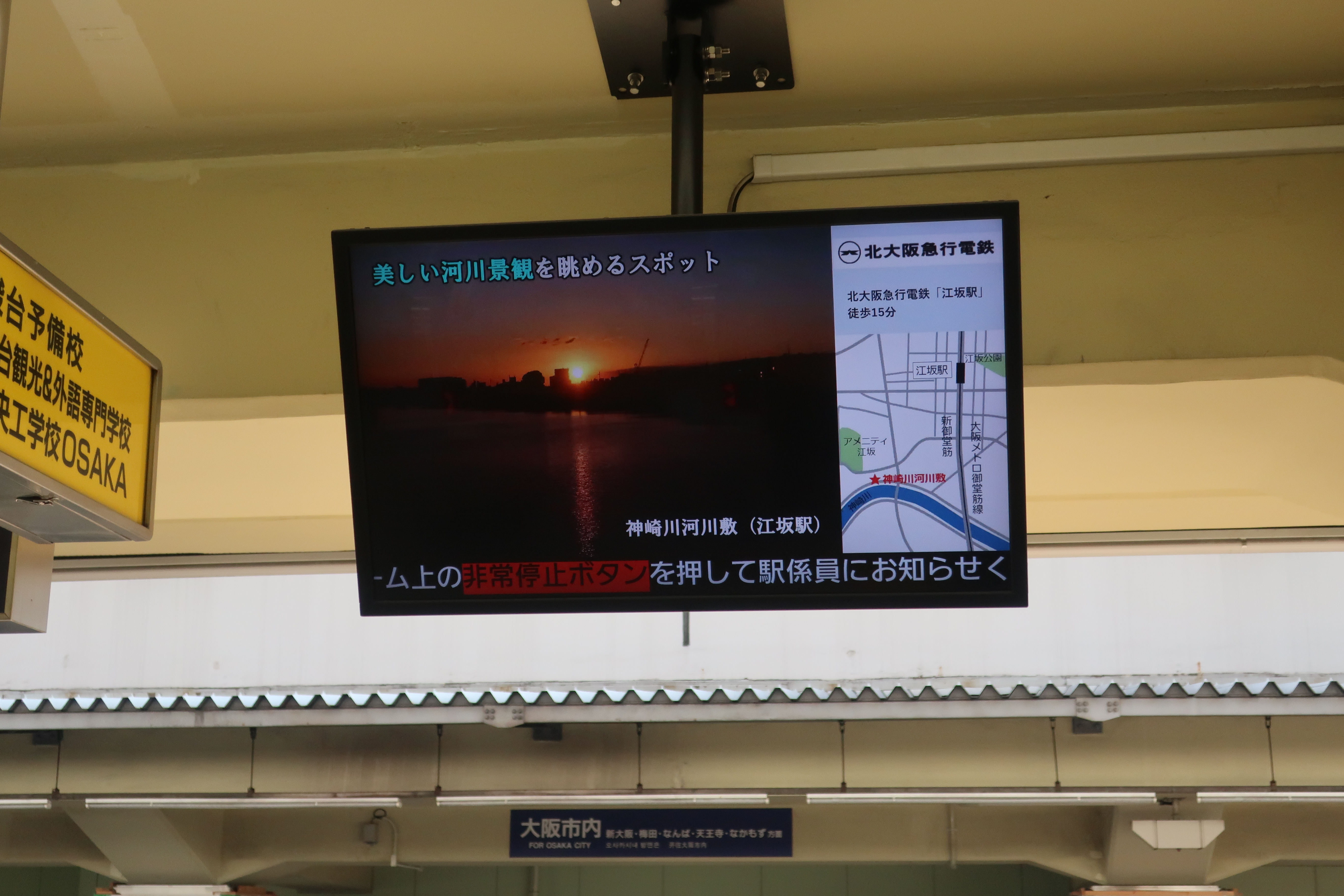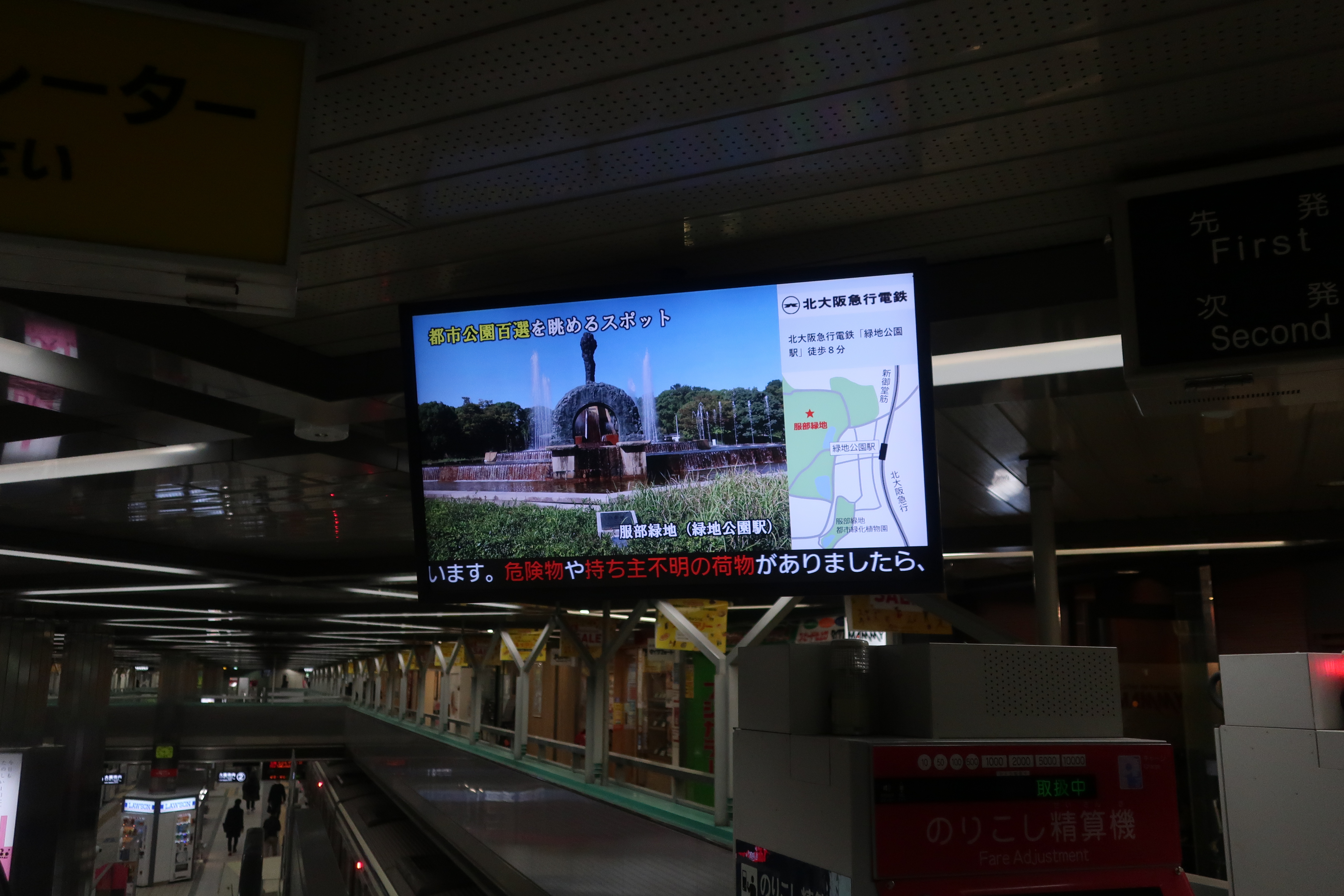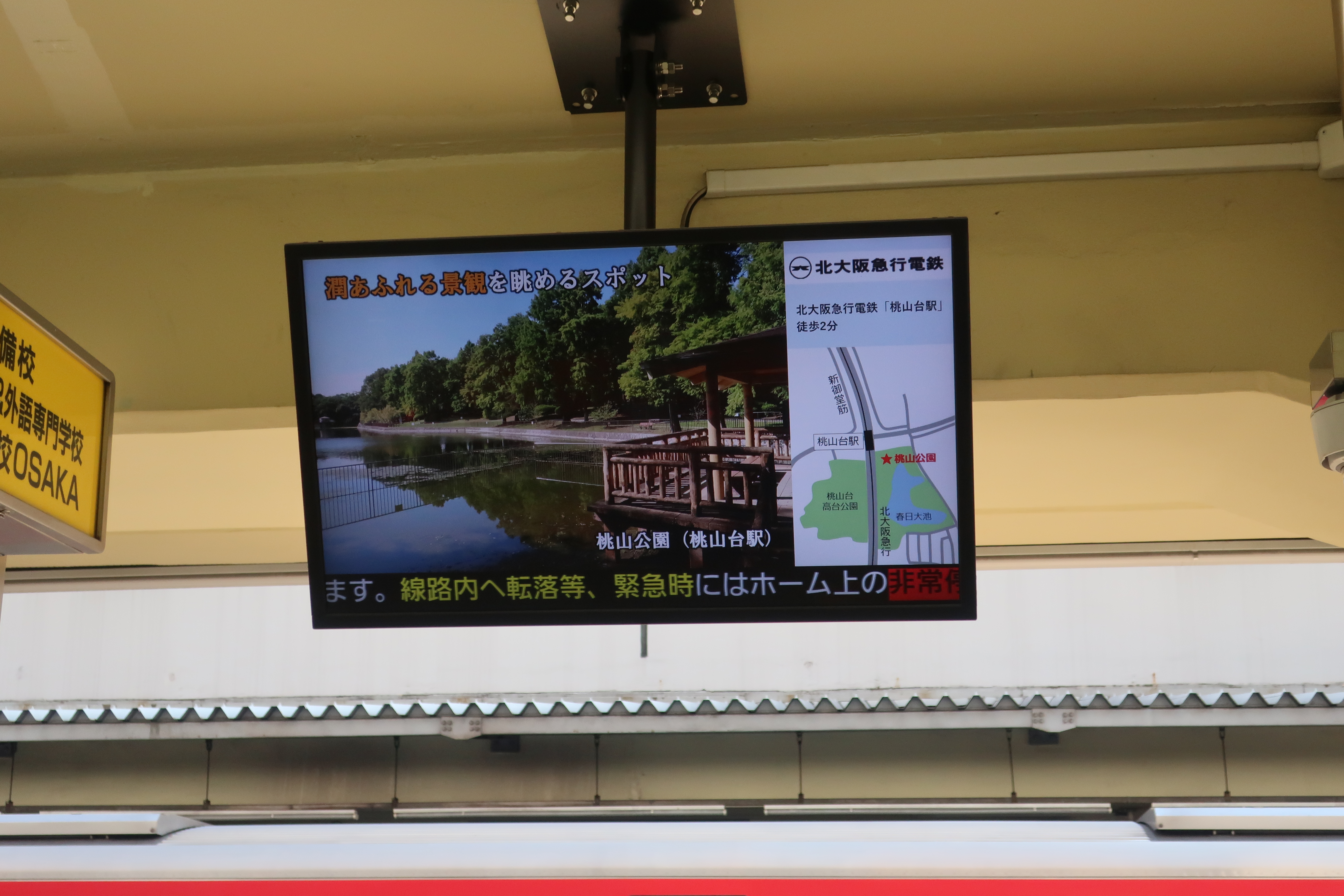 概要:3駅(千里中央駅・桃山台駅・緑地公園駅)に設置されている旅客案内モニター