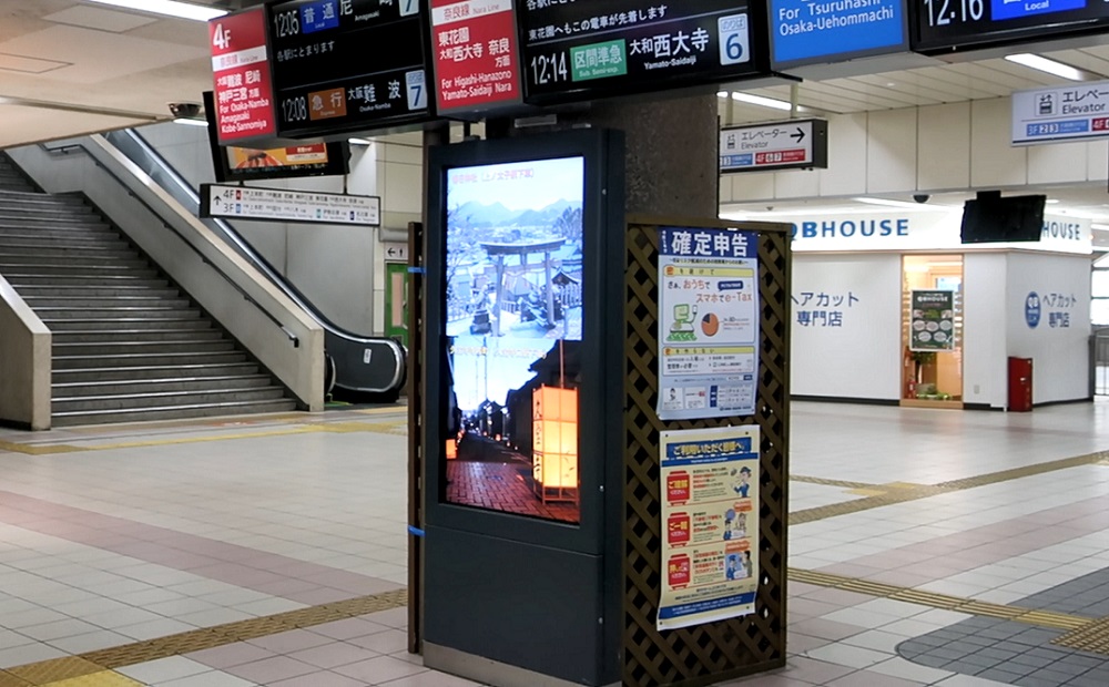 概要:近鉄線大阪地区5駅(大阪難波駅・大阪上本町駅・布施駅・大和西大寺駅・大和八木駅)に設置されているデジタルサイネージ