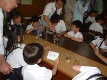 また、水質実験では身近な水(飲み物や川の水等)の汚れ具合を調べることにより、その水が直接、川や海に流れた場合どうなるか、私たち人間が日常生活で必要とする飲み物等も魚たちには、ただの汚れでしかないことを知っていただき、水を大切にすることを学んでいただきます。