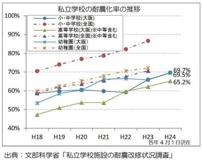 平成26年度における府立学校の耐震化率100%をめざすとともに、公立小・中学校の耐震化を促進するなど、学校施設の耐震化を推進します。