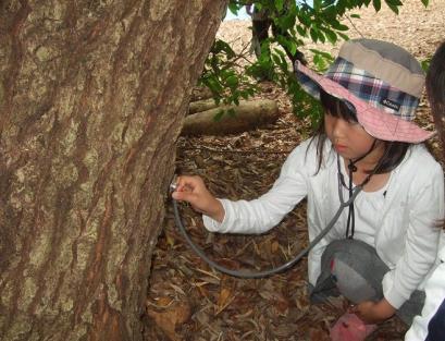 子どもたちにいろいろなことを学んでもらうために、教室づくりにも工夫を凝らしています。毎教室、大学生等のリーダーが各班を担当し、子どもたちの新たな発見や達成感を獲得できるよう、クイズで興味を持たせる等の楽しめる班づくりをした後、多種多様なゲームを実施しています。落ち葉拾いから同じ葉っぱ集めや葉っぱ取りじゃんけん、ひっつきむしダーツ、クラフトワークで作った水鉄砲を使ったゲーム等、毎回テーマに即した様々なゲームが展開されています。子どもたちは初めて会う友だちでも、班の仲間とお互いに協力し合い、目標を達成しようとする連帯感が生まれています。また、「伝言カード」(※1)を使用することで、新しい知識や経験を得た子どもたちは、家に帰ってから目を輝かせて得意気にお父さんやお母さんに話す子が多く、親子間の会話の充実につながっています。毎月の活動終了後には「ナック」のホームページに写真と活動報告が掲載され、これを見ながら家族も活動の様子を楽しんでいます。