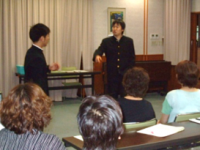 総会後、「人と人とのつながりについて考える ー人間関係スキル育成の取り組みからー」というテーマで、五中の先生から一年の宿泊学習で行った劇やワークショップの紹介がありました。トラブルになりそうな時にどうすればうまくいくかを考えたり、自分の役割や友だちのいいところを見つけることで有用感やクラスの中での存在感を感じたりすることにつながったそうです。